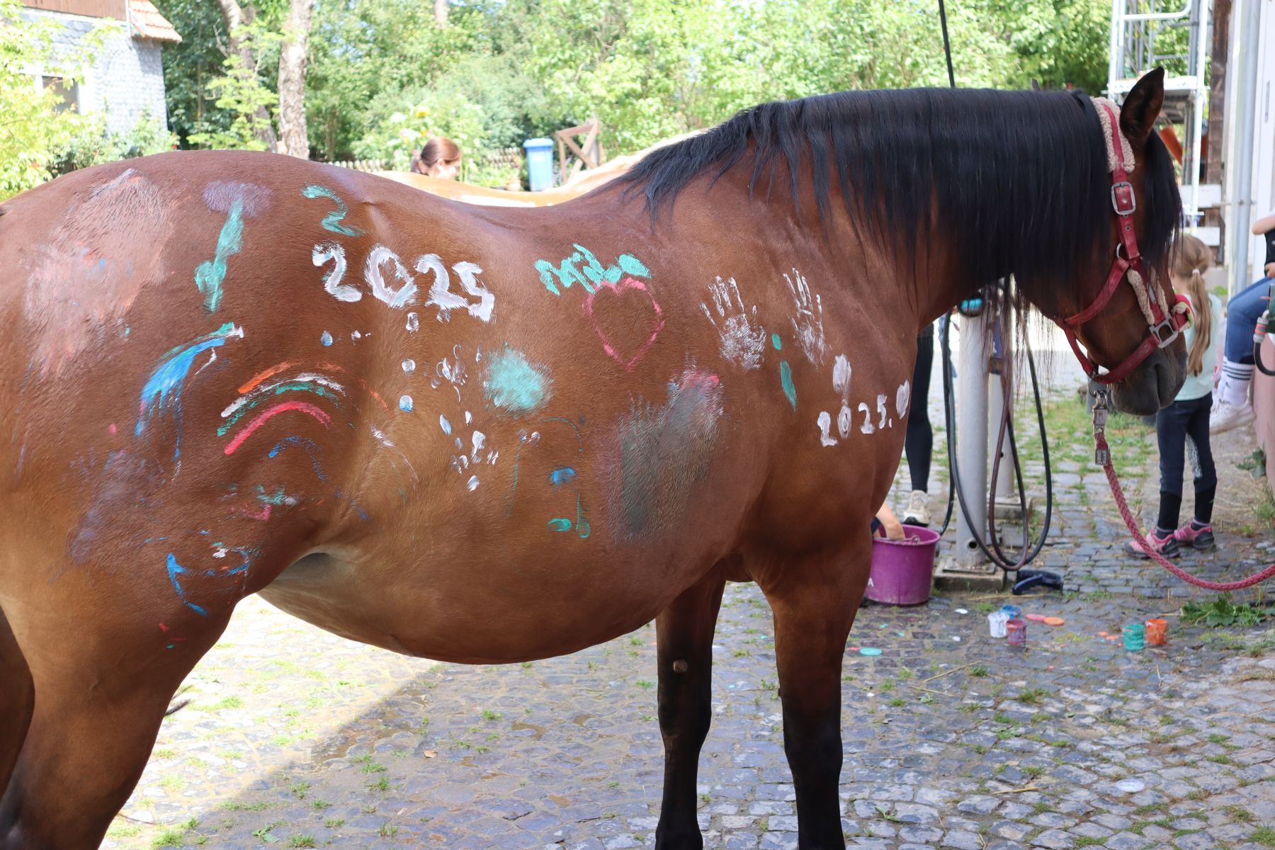 Dabei steht nicht nur das Reiten im Mittelpunkt: Gemeinsam gestalten wir den Tagesablauf, basteln, spielen und genießen die Zeit draußen. Unsere Ferienspiele sind integrativ, sodass auch Kinder mit Beeinträchtigungen herzlich willkommen sind und individuell begleitet werden.
